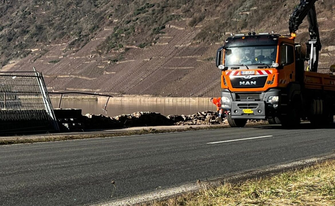 Briedern | 27. Januar 2024 | (ww). Gegen 10.40 Uhr kam es heute bei Briedern an der Mosel im Kreis Cochm-Zell zu einem Schiffsunfall. Ein zu Tal fahrendes Gütermotorschiff fuhr gegen die linke Ufer- bzw. Stützmauer gegenüber der Ortslage Briedern. Zur Unfallzeit war das Schiff nicht beladen, ragte also hoch aus dem Wasser. Somit kam es zur Beschädigung der Ufermauer im oberen Bereich über eine Länge von ungefähr 15 Metern. Am Schiff entstand lediglich leichter Sachschaden. Nach ersten Ermittlungen dürfte ein Fahrfehler in der Talfahrt aufgrund der Fehleinschätzung der örtlichen starken Strömungsverhältnisse bei leicht erhöhtem Wasserstand zu dem unfall geführt haben. Es wurde niemand verletzt. Der Radweg ist bis auf Weiteres in diesem Bereich gesperrt. Der Verkehr auf der B49 ist nicht beeinträchtigt.