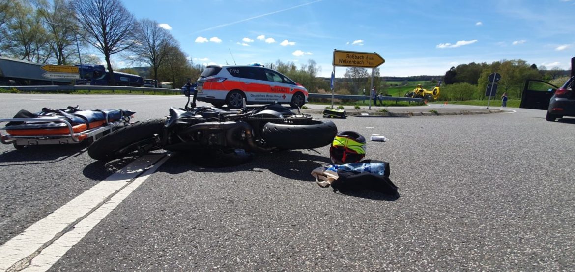 Schwerer Motorradunfall auf der B8 bei Winkelbach