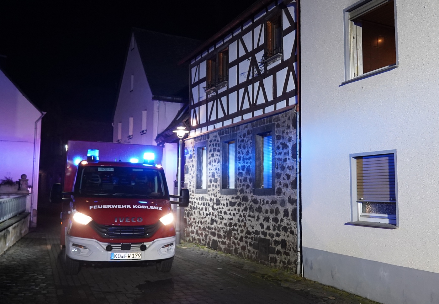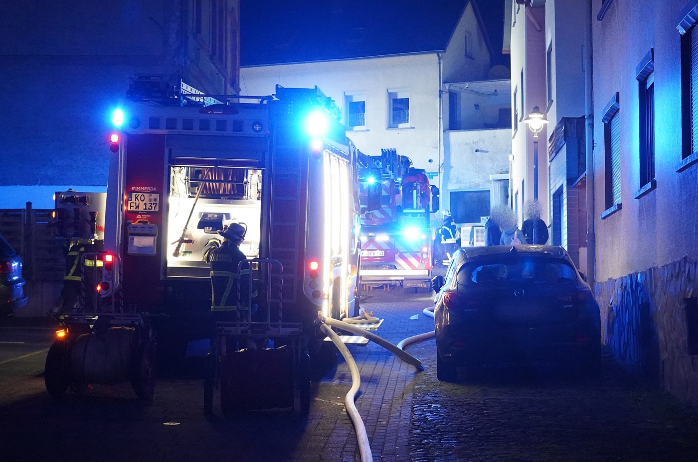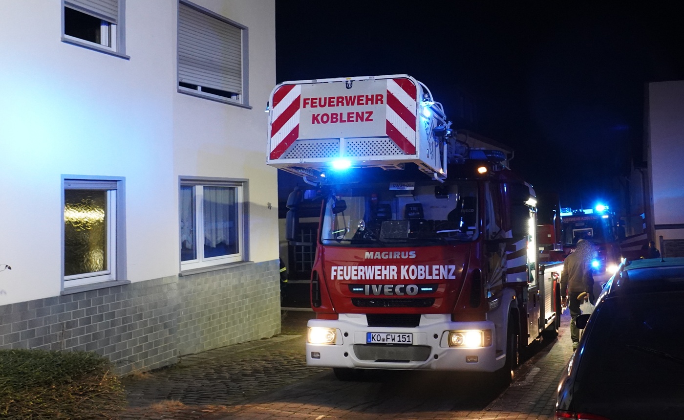 Koblenz-Rübenach | 20. Januar 2026 | (ww). Gegen 19 Uhr heute Abend ist im ersten Stock eines Wohnhauses in der Gotenstraße in Koblenz-Rübenach ein Brand ausgebrochen. Das Feuer entstand aus bilslang unbekannter Ursache im Wohnzimmer. Die Feuerwehr rettete den Bewohner verletzt aus der Wohnung. Der Senior hatte noch versucht den Brand selbst zu löschen und zog soich dabei Brandverletzungn und eine Rauchgasvergiftung zu. Er wurde dem Rettungsdienst übergeben und nach der Erstversorgung in ein Krankenhaus gebracht. Ebenfalls dem rettungsdienst übergeben wurde sicherheitshalber ein Nachbar, der versucht hatte über eine Leiter dem Mann im ersten Stock zu Hilfe zu kommen. Er gilt nach Angaben vor Ort aber eher als durch Rauchgase „höchstens leicht verletzt“. Im Einsatz waren die Berufsfeuerwehr Koblenz, die Freiwillige Feuerwehr Rübenach und der Rettungsdienst. Die Polizei hat die Ermittlungen zur Brandursache aufgenommen.