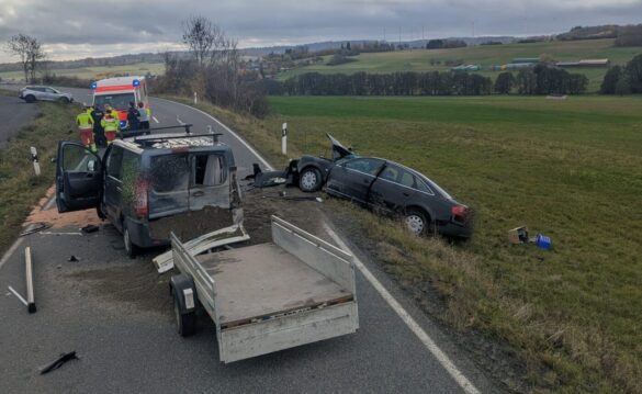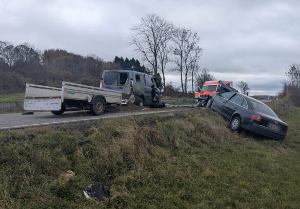 L3044-Driedorf | 3. November 2025 | (ww). Zu einem tödlichen Unfall kam es heute Mittag in Driedorf auf der Landstraße 3044. Gegen 11.30 Uhr befuhr ein 85-Jähriger aus dem Lahn-Dill-Kreis mit seinem Audi die Landstraße aus Richtung Driedorf kommend in Richtung Bundesstraße 255 („Potsdamer Platz“). Die Polizei geht derzeit davon aus, dass er mit seinem Audi aus bislang unbekannter Ursache in den Gegenverkehr geriet und frontal mit einem entgegenkommenden Peugeot-Transporter zusammenstieß. Der 85-Jährige erlag noch an der Unfallstelle seinen schweren Verletzungen. Der 63-jährige Peugeot-Fahrer aus dem Lahn-Dill-Kreis verletzte sich leicht. Eine Rettungswagen brachte ihn in ein Krankenhaus. Die L3044 ist zwischen Driedorf und B255 aktuell voll gesperrt. Mit der Rekonstruktion des Unfallgeschehens ist ein Gutachter beauftragt.