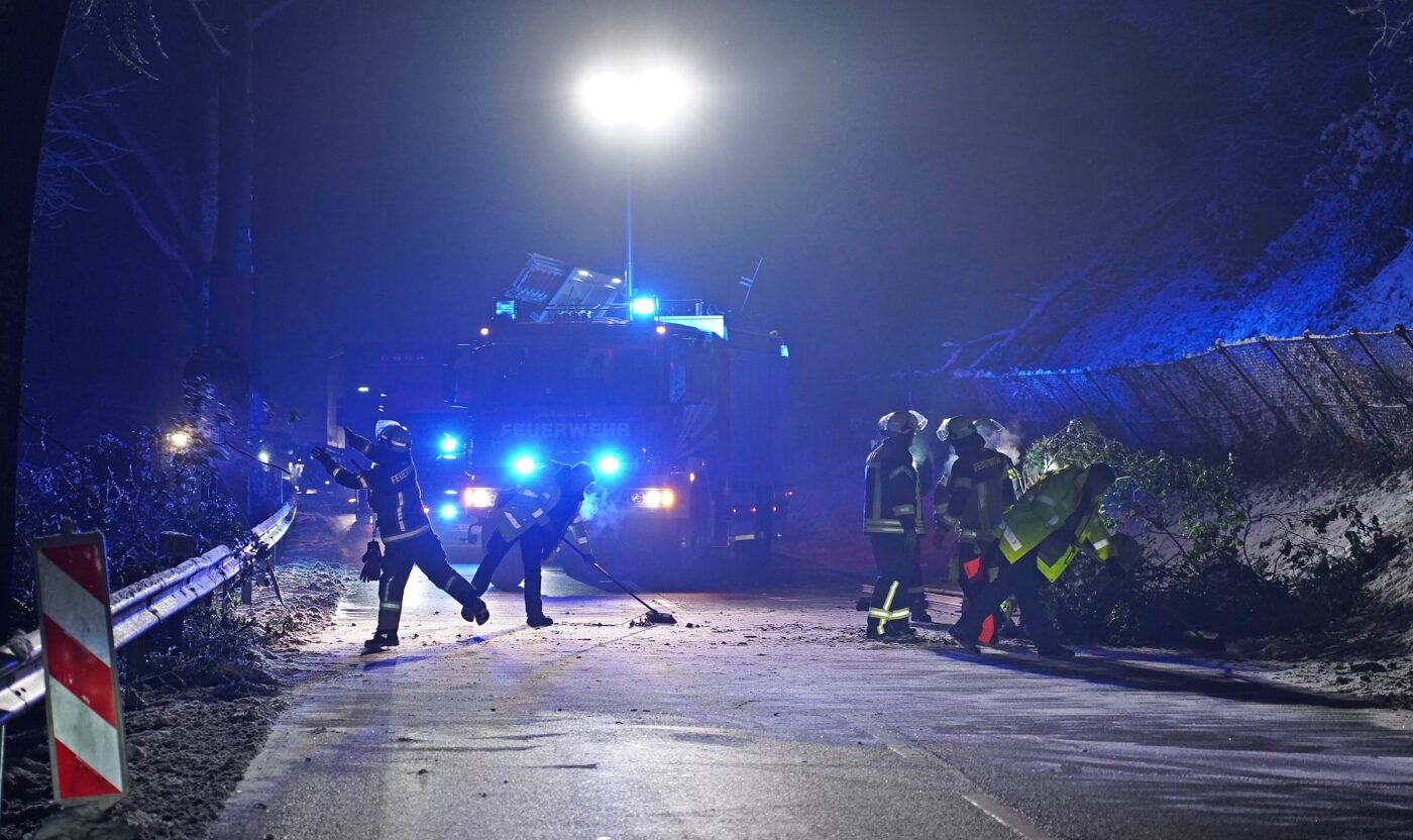 Fachbach / Friedrichssegen | 18. Januar 2024 | (ww). Gegen 21 Uhr meldeten gleich mehrere Autofahrer einen umgestürzten Baum der beide Fahrspuren der B260 zwischen Fachbach-Oberau und Friedrichssegen blockierte. Die Feuerwehr Lahnstein wurde alarmiert um das Hindernis zu beseitigen, was auch in Rekordzeit erfolgte. Schon nach einer guten halben Stunde konnte die Bundesstraße wieder freigegeben werden. Auch weil die eingesetzten Beamten der Polizei Lahnstein mit zum Besen griffen. 😉