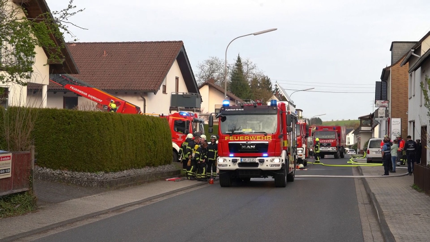 Die Löscharbeiten an der Scheune gestalteten sich schwierig. Ein Innenangriff war aufgrund eines bereits eingestürzten Daches sowie der akuten Einsturzgefahr des Mauerwerks nicht möglich. Zudem kam es im Verlauf des Einsatzes immer wieder zu herabfallenden Gebäudeteilen. Ein Bagger einer Abbruchfirma unterstützte die Einsatzmaßnahmen vor Ort. Im Einsatz befanden sich die Feuerwehren aus Dierdorf, Puderbach und Dernbach mit rund 60 Einsatzkräften. Unterstützt wurden sie vom Deutschen Roten Kreuz (DRK) Puderbach mit sechs Kräften sowie der Polizei, die ebenfalls mit sechs Einsatzkräften vor Ort war. Das offizielle Einsatzende war gegen 22 Uhr. Text und Fotos: Luca Weilberg