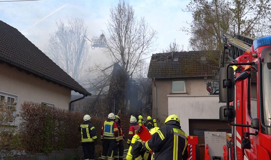Home Blaulicht Urbach: Scheunen-Vollbrand greift auf Nachbarhäuser über