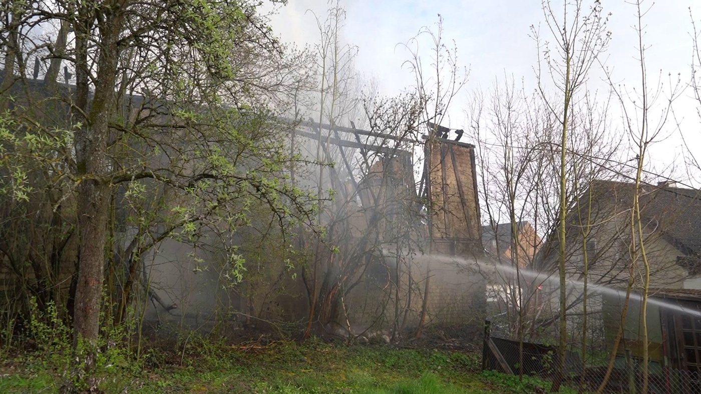 Urbach | 10. April 2026 | Luca Weilberg. Heute gegen 17.45 Uhr wurde die Feuerwehr zunächst mit dem Einsatzstichwort „unklare Rauchentwicklung aus Gebäude“ nach Urbach in der Verbandsgemeinde Puderbach im Landkreis Neuiwed alarmiert. Kurz darauf erfolgte eine Alarmerhöhung auf „B3 – Gebäudebrand“. Beim Eintreffen der ersten Einsatzkräfte stand eine Scheune bereits in Vollbrand. Aufgrund der Lage wurde die Feuerwehr Dierdorf mit Drehleiter und Löschfahrzeug nachalarmiert.