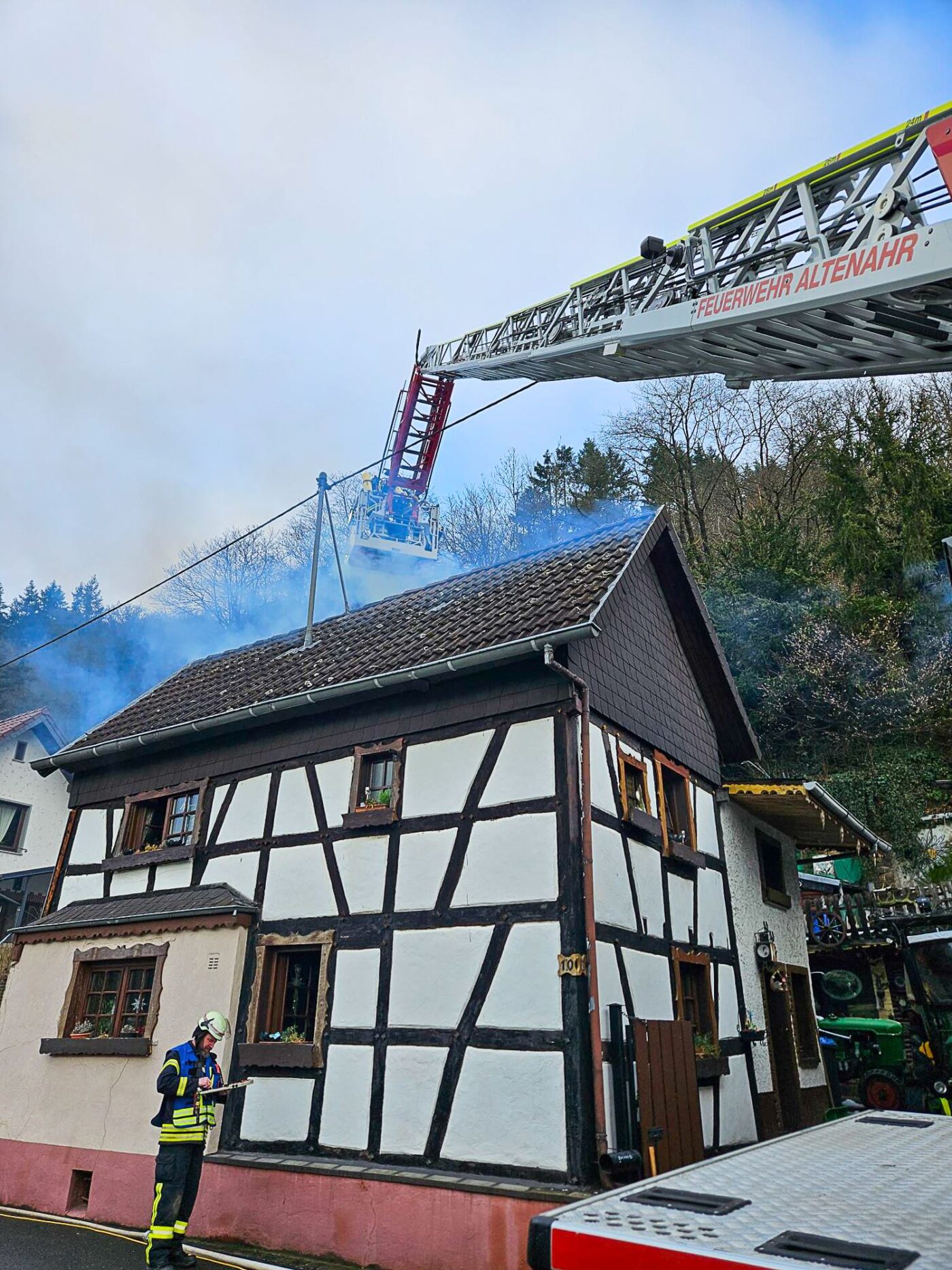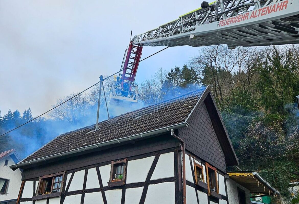 Kesseling / VG Altenahr | 21. Januar 2025 | (ww). Am vergangenen Donnerstag wurde der Integrierten Leitstelle in Koblenz gegen 13.45 Uhr ein Dachstuhlbrand in Kesseling in der Verandsgemeinde Altenahr im Kreis Ahrweiler gemeldet. Nach Eintreffen der ersten Einsatzkräfte stellte sich heraus, dass es sich um einen „fulminanten Kaminbrand“, so die Pressemitteilung der Verbandsgemeinde Altenahr, handelte, der für erhebliche Rauchentwicklung sorgte und zunächst den Eindruck eines Dachstuhlbrandes erweckt hatte. Die Einsatzlage gestaltete sich für die Feuerwehrkräfte anspruchsvoll: Der Kamin musste in Teilen abgetragen werden, um eine weitere Ausbreitung des Brandes zu verhindern. Zwei Schornsteinfeger wurden zur fachlichen Unterstützung hinzugezogen. Insgesamt waren 47 Feuerwehrleute aus den Einheiten Kesseling, Staffel, Heckenbach, Ahrbrück, Altenahr und Kreuzberg im Einsatz. Acht Trupps unter Atemschutz arbeiteten intensiv daran, die Lage unter Kontrolle zu bringen. Der Einsatz zog sich bis in die Abendstunden hin. Erst gegen 20 Uhr konnte schließlich Entwarnung gegeben und die Arbeiten vor Ort abgeschlossen werden. Glücklicherweise wurde bei diesem Einsatz niemand verletzt. Dank der koordinierten Zusammenarbeit aller beteiligten Kräfte wurde der Brand erfolgreich bekämpft und größere Schäden verhindert. Quelle: PM VG Altenahr/ Fotos: Stephan Knieps / Feuerwehr Altenahr