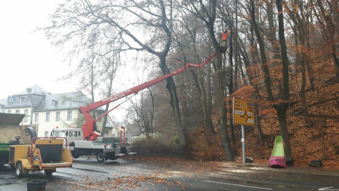 Montabaur. Die Bahnhofstraße in Montabaur muss am Samstagmorgen ab 7:00 Uhr vollständig gesperrt werden. Grund dafür sind Baumpflegearbeiten am Schlossberg. Auch die vor Ort befindlichen Parkplätze dürfen nicht benutzt werden. Anlieger können ihre Häuser dann nur noch fußläufig erreichen. Während der Arbeiten wird Totholz aus den Bäumen entfernt und absterbende Bäume gefällt, wodurch Äste auf die Fahrbahn fallen könnten. Eine Umleitung für den betroffenen Abschnitt zwischen dem Verkehrskreisel Alleestraße und der Einmündung Wallstraße erfolgt über die Eschelbacher Straße, die Werkstraße, den Fürstenweg und die Freiherr-vom-Stein-Straße – und umgekehrt. Nach derzeitigem Stand soll die Sperrung bereits am Nachmittag wieder aufgehoben werden.