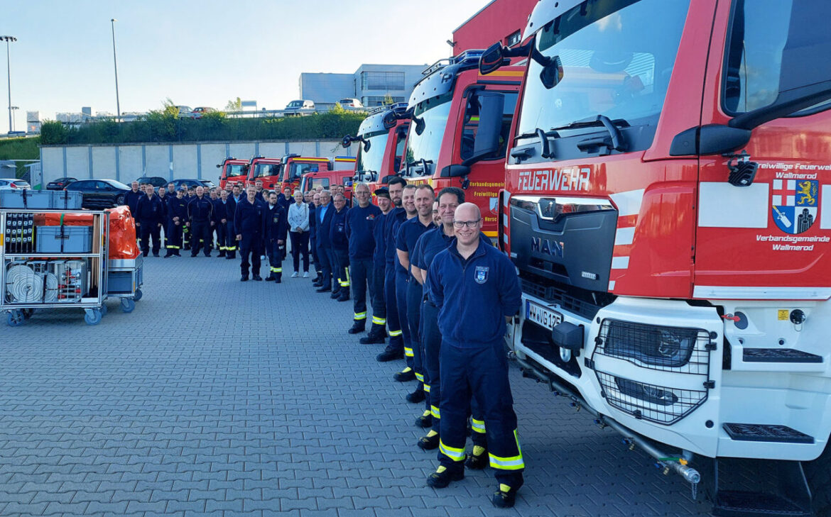 Quelle: PM KV WW / Foto: Kreisverwaltung/Carolin Faller: Die Einheiten der Waldbrandzüge Nord und Süd waren zur Übergabe der Rollcontainer nach Selters gekommen.