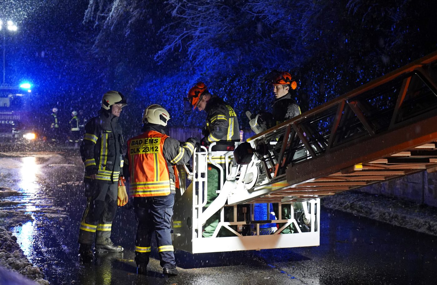 Schulbusse sind auch im angrenzenden Rhein-Lahn-Kreis und in den anderen Höhen-Landkreisen ab der mittäglichen Heimfahrt Mangelware – nur mit Glück kommt noch der eine oder andere durch. Zeitgleich überschlagen sich die Meldungen aus dem Westerwald, der Vordereifel und dem Hunsrück: gesperrte Straßen, umgestürzte Bäume, Autos die in Gräben gerutscht sind und LKW die an Steigungen quer stehen. Immermehr Feuerwehreinheiten werden in die Gerätehäuser gerufen, in der Verbandsgemeinde Diez sind nahezu alle Einheiten mit reihenweise umgestürzten Bäumen beschäftigt, später kommen punktuelle Stromausfälle hinzu – dann bleiben die Gerätehäuser sowieso besetzt.