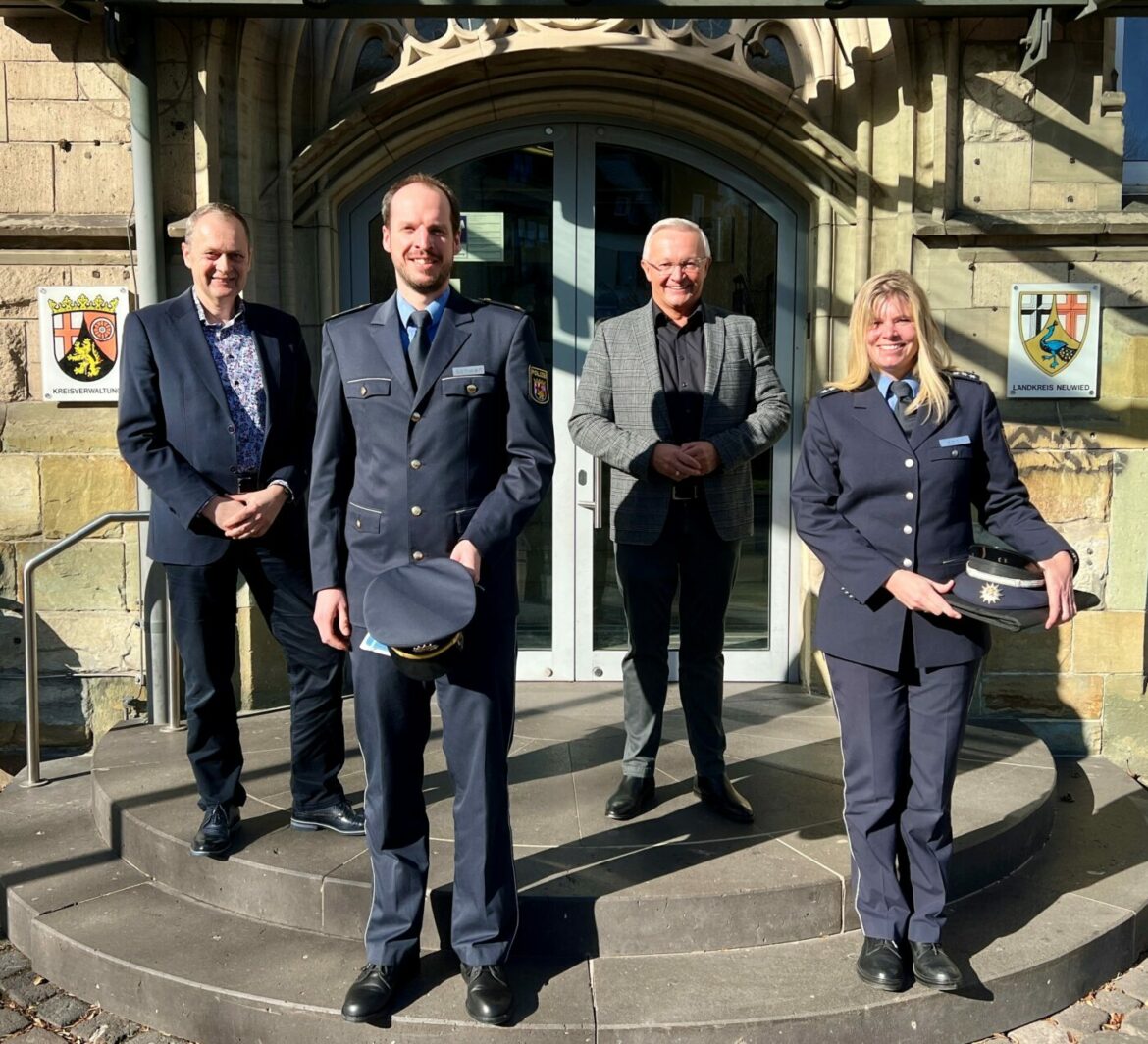 Kreis Neuwied | 5. April 2022 | (ww). Dass er einen „intensiven Austausch“ mit den Kommunen sucht, hatte Florian Schwan schon kurz nach seinem Antritt als neuer Chef der Polizeiinspektion Straßenhaus angekündigt. Diesen Worten ließ er jetzt Taten folgen – und rannte bei seinem „Antrittsbesuch“ sprichwörtlich offenen Türen ein. Denn auch Landrat Achim Hallerbach und seinem Ordnungsamtsleiter Frank Laupichler liegt viel daran, die gute Zusammenarbeit mit der hiesigen Polizei fortzusetzen. Daher freuten sich beide über ein sehr konstruktives Gespräch in äußerst angenehmer Atmosphäre mit Schwan und seiner Stellvertreterin Christina Koch.